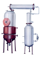 2. In order to overcome the defect of second-time steam on top of concentrator condensing to flow back tank before entering into condensator, this device changes condensator into oblique horizontal type;